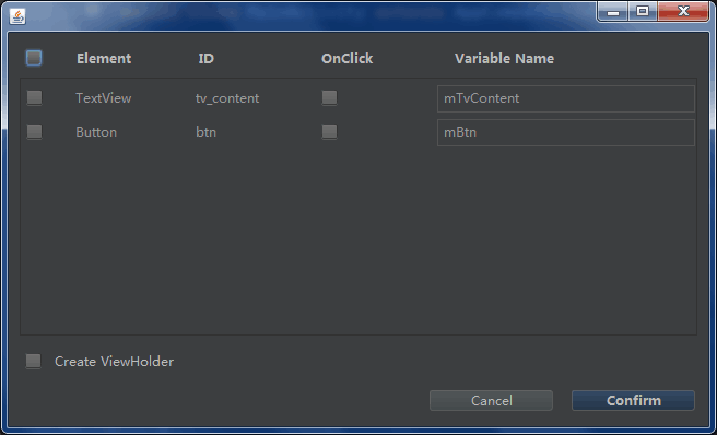 在窗口中选中,需要生成的变量,点击 confirm 即可: